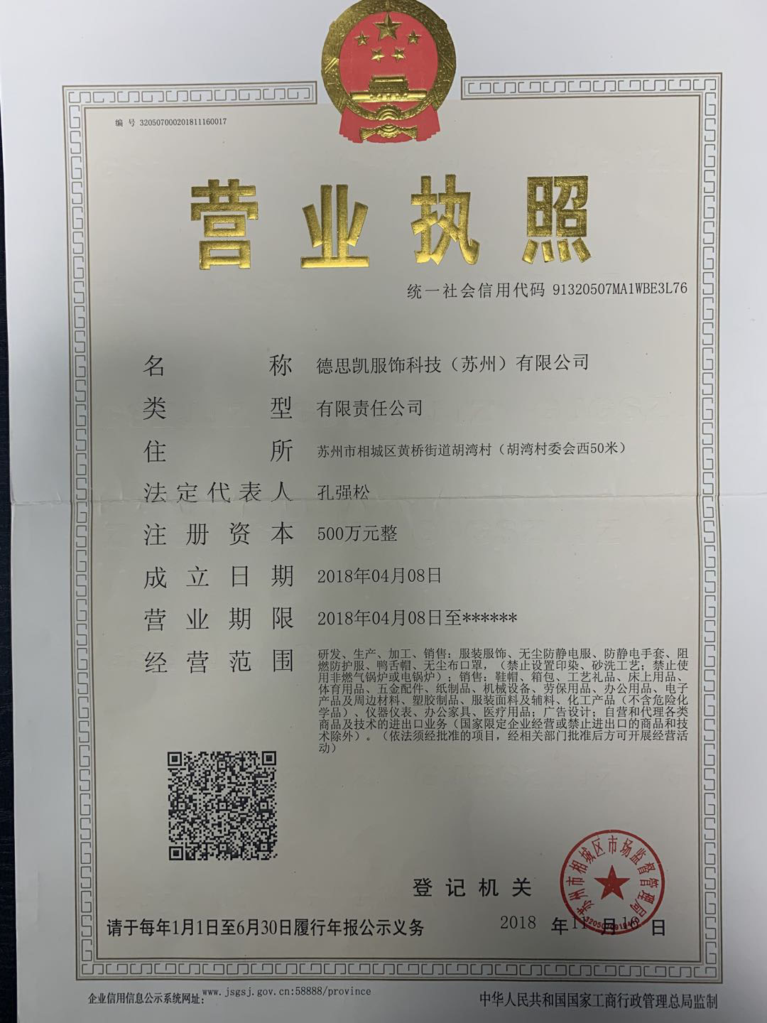 德思凱服飾科技(蘇州)有限公司